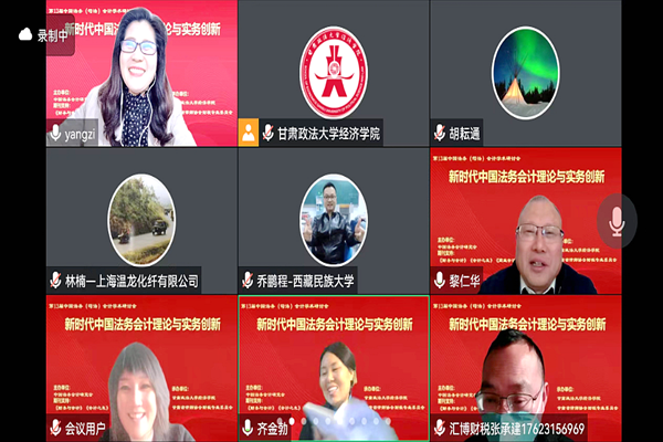 本网讯(会计学院 张邢薇 管会 张莎)12月18日,由中国法务会计研究会主办、甘肃政法大学经济学院、甘肃省律师协会财税专业委员会联合承办的“第13届中国法务(司法)会计学术研讨会”于线上举行,我校会计学院院长杨良教授作为第14届中国法务(司法)会计学术研讨会承办方及第三分论坛主持人受邀参加了此次会议。会议以“新时代中国法务会计理论与实务创新”为主题,来自全国各地和澳门、台湾地区高校、会计师事务所、律师事务所、司法会计鉴定等相关机构的240余位专家学者参加了会议。