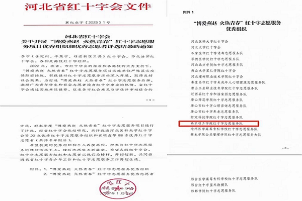 我校红十字志愿服务队荣获“博爱燕赵 火热青春”优秀组织称号