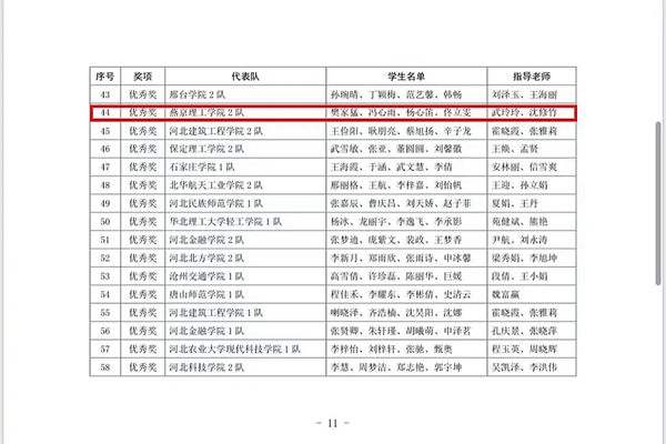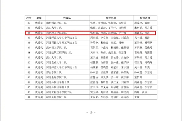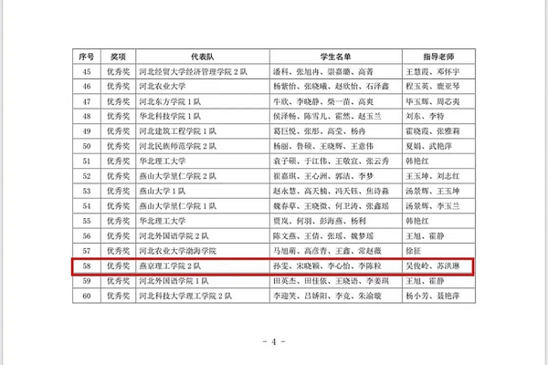 会计学院组建2支队伍参赛,经过激烈的角逐,在各位指导老师与同学们通力合作之下,由杨良院长、杨慧慧老师带领的燕京理工学院1队和吴俊岭老师、苏洪琳老师带领的燕京理工学院2队同获优秀奖。