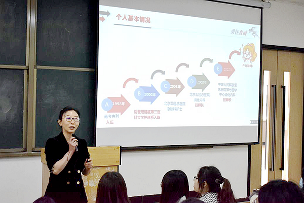 本网讯(环境与健康学院 陶薪羽)为激发同学们的学习热情,帮助他们更好地制定未来的学习目标。3月1日,环境与健康学院在E202教室举办了一场主题为“形成人生正向飞轮——努力获得有选择权利的人生”的名师一堂课活动。此次活动由中国解放军总医院第七医学中心内镜中心技师长王昕主讲,2022级护理专业全体师生参加。