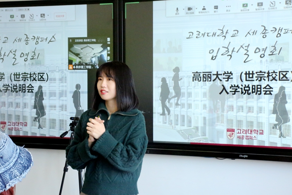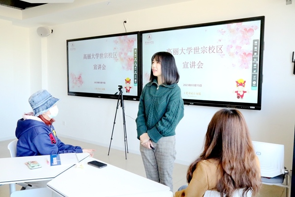 为了让现场的同学们更加了解高丽大学世宗校区的校园生活,许老师介绍了高丽大学世宗校区的文化体育馆、公共政策馆、科学技术馆、图书馆、国际馆、教室、运动场、宿舍等场所以及丰富多彩的学生活动,展现了学校独有的魅力。