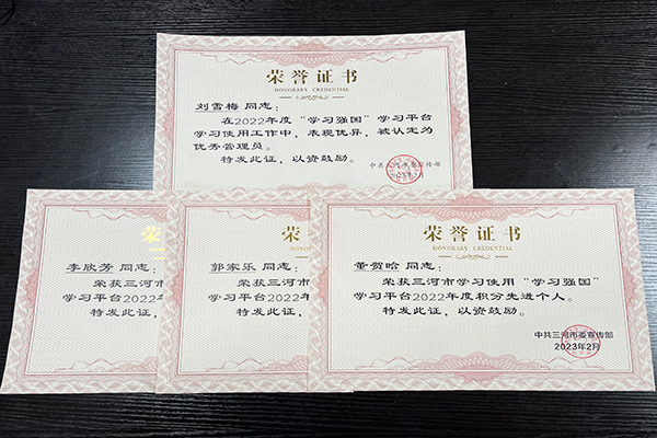 一年来,学校高度重视,加强组织领导,精心部署,强力推进,广大师生积极投入学习平台学习当中,参与率、活跃率和学习积分指标不断提高。2022年,中共三河市委宣传部在表彰宣传推广使用“学习强国”学习平台学习组织和学习个人的通报中,燕京理工学院获得“学习优秀单位”称号,刘雪梅获得“优秀学习管理员”称号,董贺晗、郭家乐、李欣芳获得“年度积分先进个人”称号。