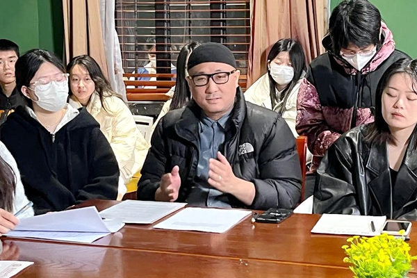 黄鹏老师向同学们分享了剧本的大致内容,他邀请三位同学谈谈他们对剧本的看法及向剧本提出修改意见,给同学们提供锻炼实践的机会。三位同学分别从具体台词、分析人物性格及影视可观性等方面进行探讨。