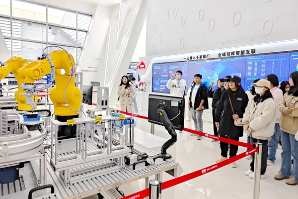 首先,同学们通过大屏视频讲解对用友集团的产业发展进行了初步的了解。新道科技股份有限公司河北分公司杨艺老师向同学们介绍了用友产业园区的相关背景以及创立历程,并带领同学们参观了员工生活区以及办公区域。随后,河北新道分公司讲师张媛雅在数智企业体验馆带领全体师生参观了智慧医疗、智慧交通,智能建筑、协同办公、智慧采购等各方面的数字化产业。在讲师与学生的互动中,同学们深刻了解了用友集团发展的进程与趋势。