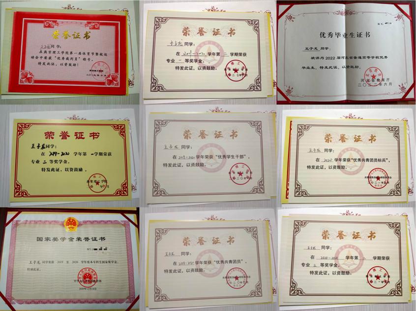 坚定且上进,不满足于现状,也不会拘泥于未来,是王子龙同学的真实写照。他在生活中去践行任务表上的清单,为自己的目标铺平道路。大学四年的时光里,他在学业上刻苦努力,四年成绩一直名列前茅,并获得了省级优秀毕业生、国家励志奖学金及校级奖学金等荣誉。
