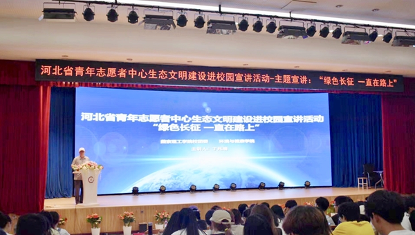 作为河北省第七届十大杰出青年志愿者之一的丁兆瑞先生受邀进行讲座。丁兆瑞先生自1996年起投身环保事业,在共青团河北省委,共青团廊坊市委的支持下,在全国进行环保巡回演讲,共计演讲2200余场,直接听众达百万人次。他在2006年被评为感动廊坊十大杰出人物,他竭力将环保理念传递给每一个人。