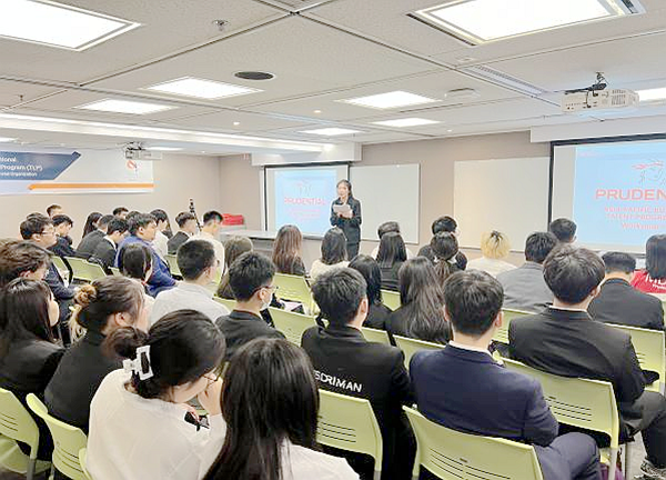 在第一天的实践活动后,保誠公司经理为师生带来了精彩《一分钟销售》课程,学生代表战诗思在发言中表达了这一天的收获,以及对接下来访学活动的期待。