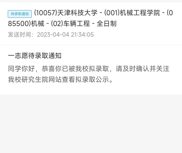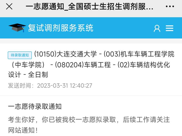 代凌越的录取通知