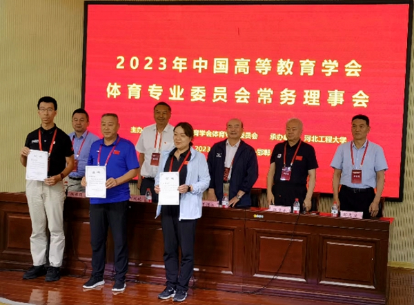 本网讯(体育学院 蒋帅 肖子一)7月14日,2023年中国高等教育学会体育专业委员会常务理事会在河北工程大学召开。燕京理工学院体育学院院长肖子一受邀参加此次会议,并当选中国高等教育学会体育专业委员会理事。