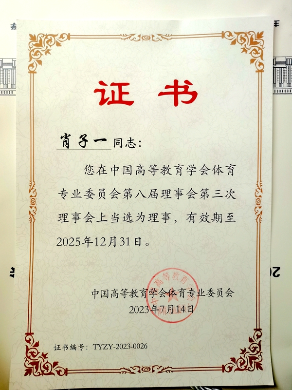 体育学院院长肖子一当选中国高等教育学会体育专业委员会理事