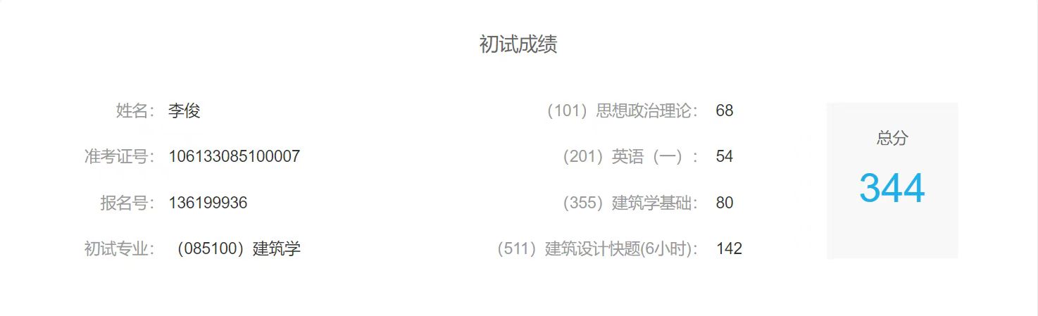 李俊的初试成绩