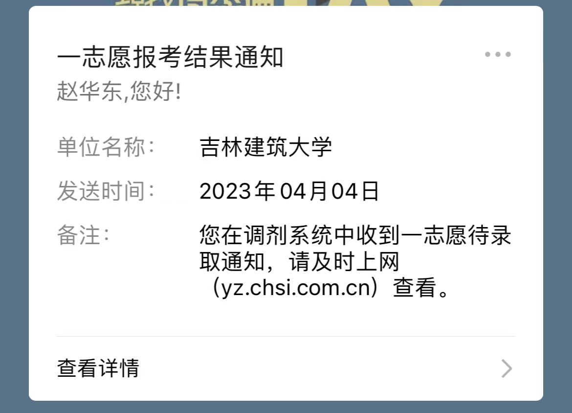 赵华东的录取通知