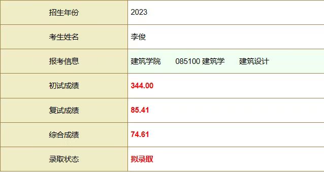 李俊的拟录取通知