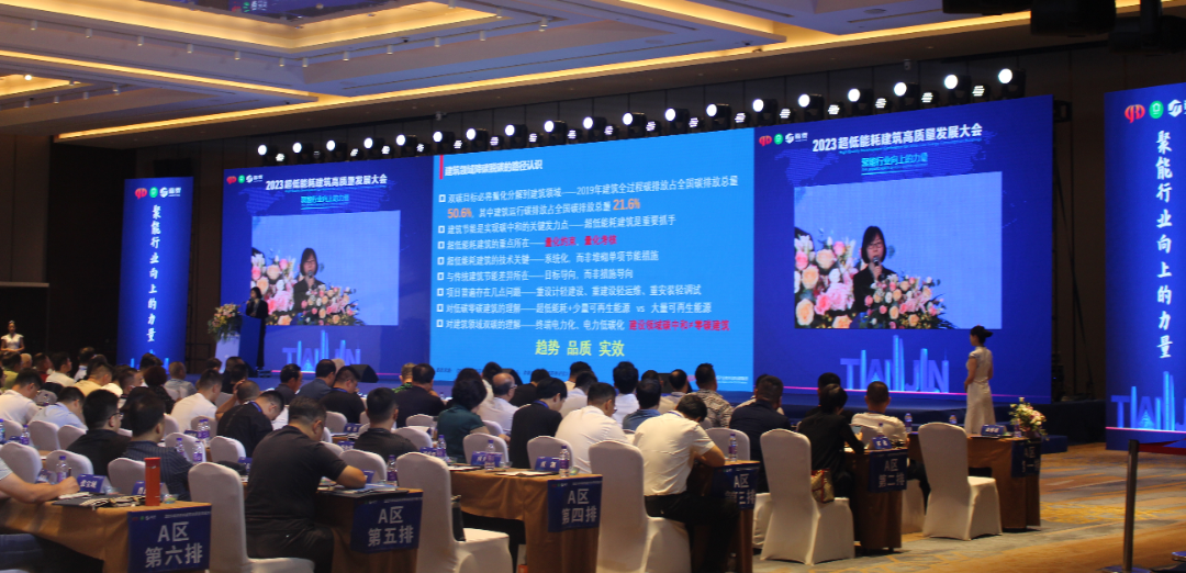 本次大会以习近平总书记在第75 届联合国大会讲话中提出 “2030 碳达峰、2060 碳中和”的目标,大力推动超低能耗建筑在中国的实践与发展,进一步规范建筑节能标准。住房和城乡建设部原总工程、中国房地产业协会副会长兼秘书长陈宜明,天津市滨海新区区长单泽峰,中国建筑节能协会副会长、住房和城乡建设部标准定额司原一级巡视员倪江波,住房和城乡建设部科技与产业化发展中心副主任武振致辞。国家气候战略中心战略规划部主任柴麒敏,住房和城乡建设部康居中心总经理、工学博士、教授级高工马伊硕,被动式低耗能建筑产业技术创新战略联盟理事长、北京兆泰集团副董事长、北京鼎固好实业有限公司董事长朱皓宇分别就“从愿景到行动:双碳目标下新能源新 经济发展机遇与挑战”“从超低能耗建筑走向碳中和:以量化目标为导向的建筑脱碳发展”“城市更新背景下核心区办公建筑的高品质低碳化改造”等作了演讲。