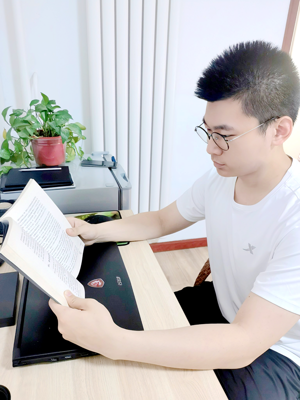 从开始到考研前一天,王文硕坚持每天背单词,结合背单词软件形成联想记忆,大大提高了学习效率。“所以记单词每天是乐此不疲。每天两个单元,25天就能背完,然后再一轮。期间,将自己不会的单词记录到一个小本上,随时可以回顾,很方便,不会的画一个标记,下次可以重点记忆。”鲁迅曾说:“世上本没有路,走的人多了,也便成了路。”谈起自己的复习经验,王文硕总是条理清晰的叙述,所谓经验,不过是自己一步一个脚印走出来的。