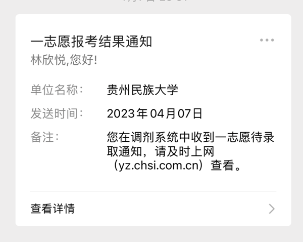 林欣悦的待录取通知