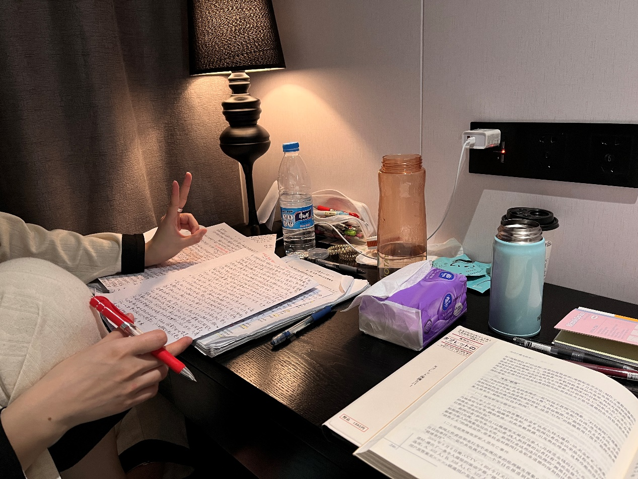 李晓菁确定好目标专业与院校后正式开始备考。她每天都给自己布置新的任务,一天天的加量,从最初一天背两百个单词都很费劲到后期一个星期过完五千词的大纲词汇,从只对七个政治选择题到单选题全对,从面对全新的专业课的手足无措到一张张A4纸上默写满重点知识,以量的积累达到质的飞跃。临近考试,李晓菁身体抱恙,同时也遭受着心态上的崩溃,李晓菁和朋友相互鼓励、相互打气,把负面情绪宣泄出来,让自己的心态逐渐恢复平静。