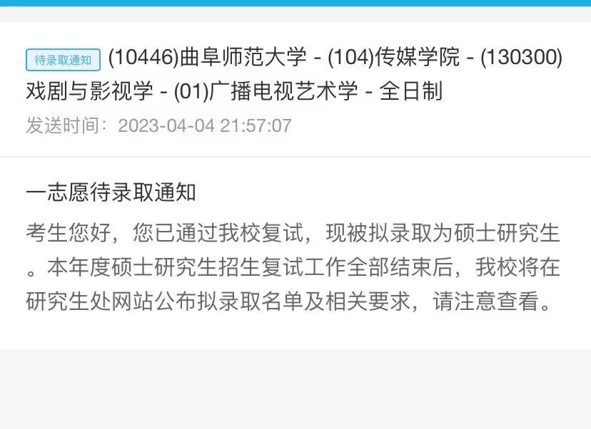 李晓菁的待录取通知