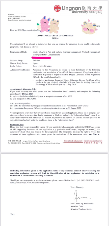 白子涵的录取通知