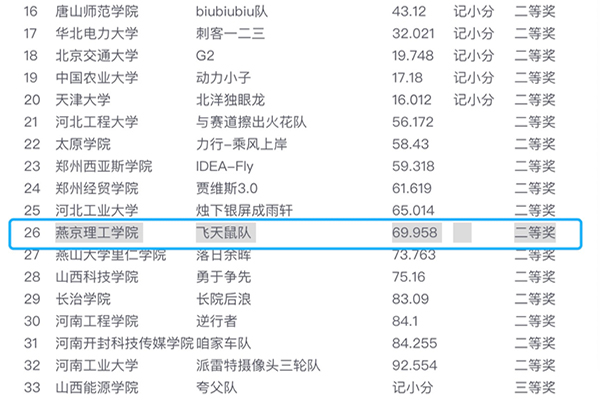 本网讯(信息科学与技术学院 冯菲)2023年第十八届全国大学生智能汽车竞赛华北赛区比赛在太原工业学院落下帷幕,经过三天的激烈角逐,燕京理工学院派出的2支队伍,来自不同组别的两支队伍均获奖,其中信息科学与技术学院、智能工程学院联合参赛队伍队员高熹、赵新颖、安阳瑞三人,在”三轮摄像头组”项目中荣获华北赛区二等奖。