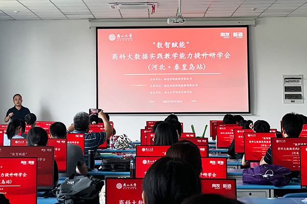 此次研学班是由新道科技股份有限公司新商科事业部主办,燕山大学经济管理学院承办,积极响应国家《普通高等教育学科专业设置调整优化改革方案》政策对新文科打破学科专业壁垒,深化学科交叉融合的要求,同时助力院校培养大数据复合型人才而组织的研学活动。为此,新道科技股份有限公司新商科事业部重磅推出商科大数据能力提升综合解决方案,为老师们提供了新的学习平台和教学思路。来自全国各地不同高校的老师相聚燕大,展开此次研学会。