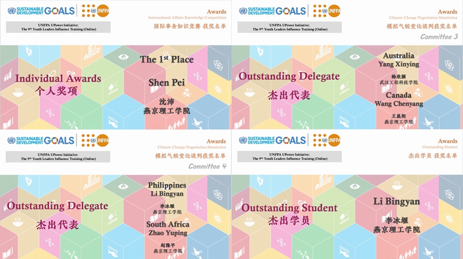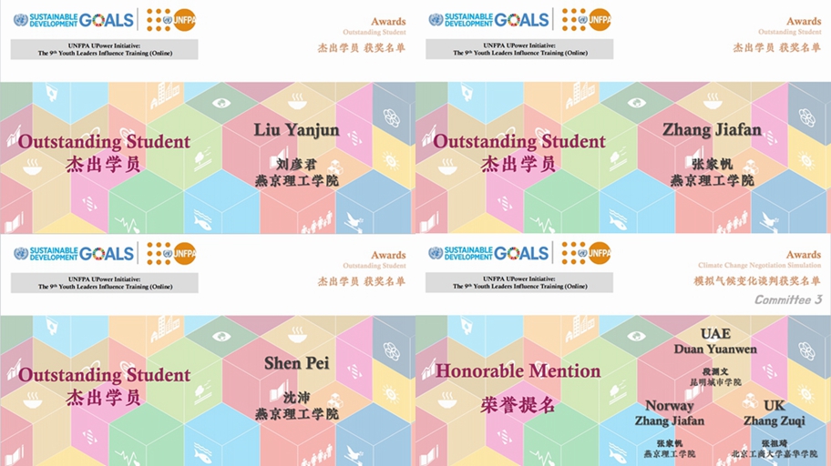 我校学子在联合国人口基金UPower计划第九届青年榜样影响力培训班中荣获佳绩