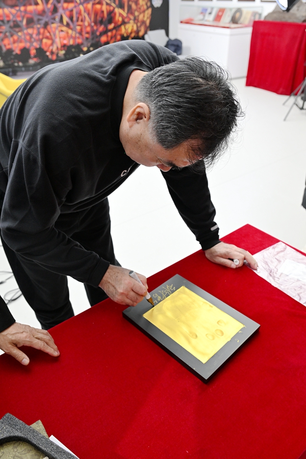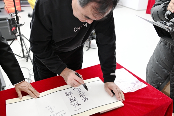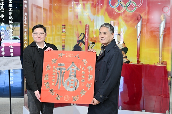 最后,邹振先教授赠与我校福字、寄语以及冠军手印。