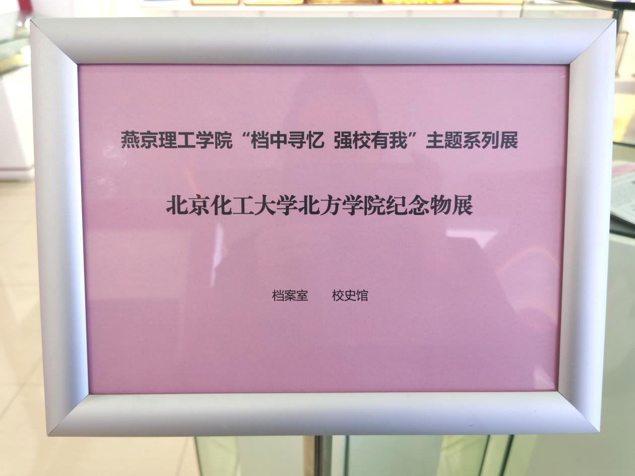 燕京理工学院2005年建校,其前身是中国优秀独立学院——北京化工大学北方学院,2013年经教育部批准转设为燕京理工学院。此次展出内容为北化大时期的纪念物,包括学校发文纸、信封、校徽、录取通知书、印章、学院简报、刊物等。学校简报记录建校以来学校所发生重要事件,刊物包括北京化工大学北方学院特刊《成长》、北京化工大学北方学院师生赴汶川地震灾区四川平南羌族乡“支农支教志愿服务活动”特刊等。