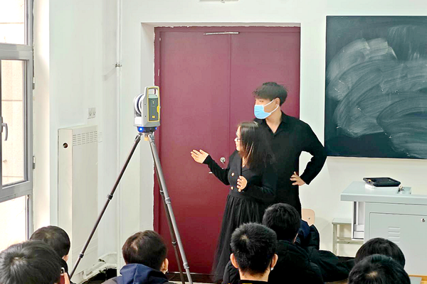 企业工程师带领同学们观看了Trimble X9三维激光扫描仪的发布视频,让大家简单了解到这一测绘仪。工程师结合PPT为同学们详细讲解了扫描仪与以往的扫描仪相比有什么先进的功能以及该扫描仪的适用场景,如地形测绘、基础设施、工业测量、司法取证、文化遗产、油罐测量等等。讲解结束之后,工程师也为同学们现场演示,工程师就同学们现在所在的教室取点,进行了扫描演示,之将扫描结果在投影上进行展示,使供大家对扫描仪的输出结果全方位了解。