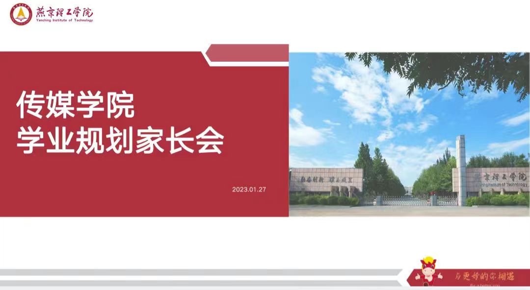 本网讯(传媒学院 左冬兴)1月27日,传媒学院在腾讯会议平台上召开了以学业规划为主题的家长会。通过讲解与答疑的形式,深化家长对学生未来发展路径的理解,促进家校合作,共同推动学生个人成长。