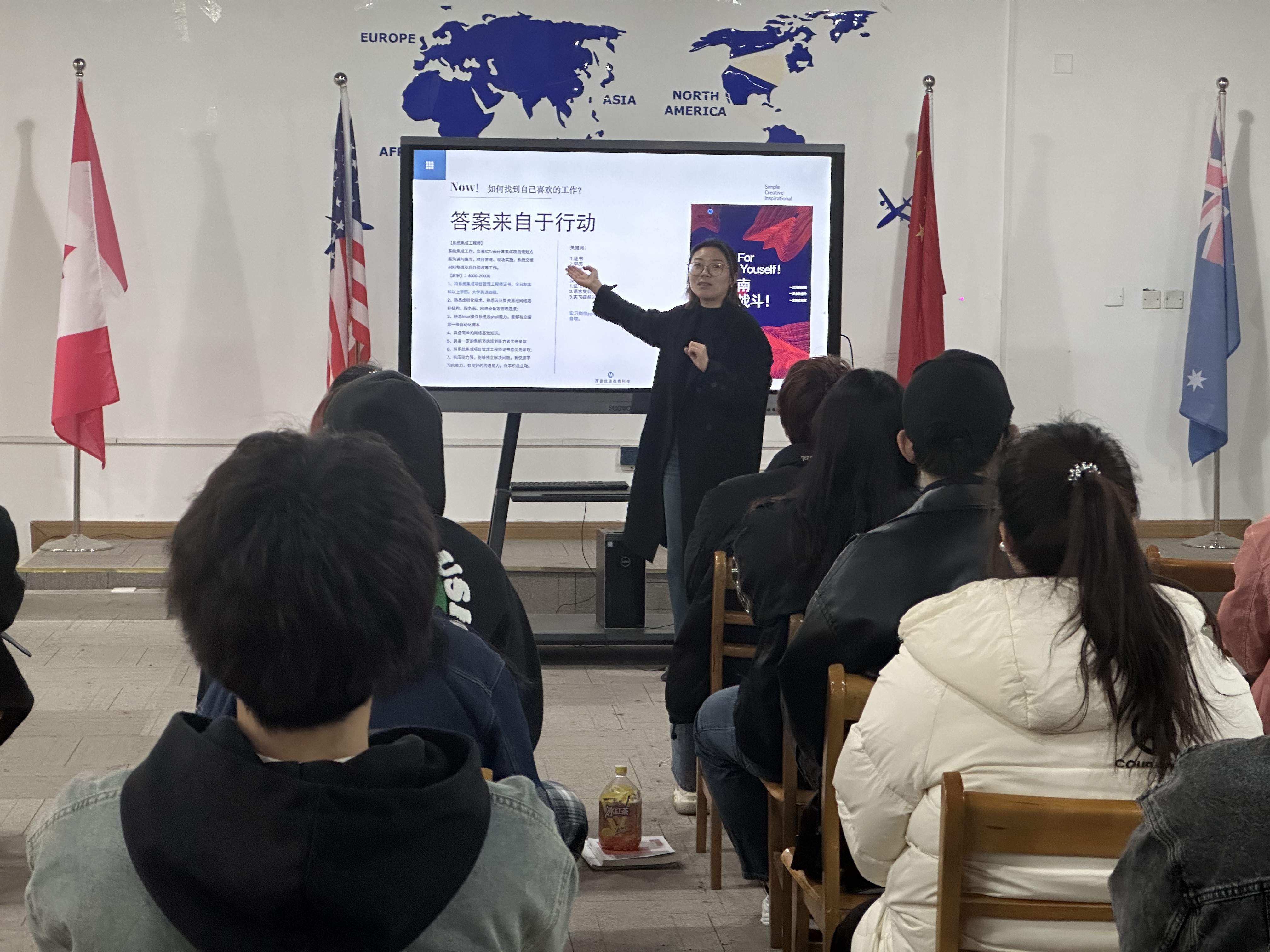 在3月20日的大型讲座中,刘萌老师结合自身的经历和经验,从毕业去向选择、适合什么工作、如何找到自己喜欢的工作、简历设计求职面试技巧四个方面进行了详细解读,并通过实例进行示范讲解,鼓励同学们积极行动起来,拒绝躺平,认清自己,掌握简历制作及面试技巧,为求职之路做好准备。听讲的同学们互动积极,反响良好。