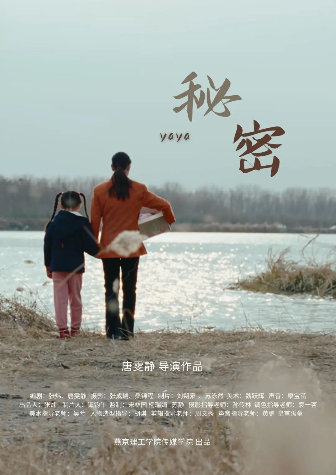短片《秘密》以儿童视角出发,深情讲述了一位失去女儿的母亲与一个缺少母亲陪伴的女孩之间彼此温暖的故事。该片的编剧是燕京理工学院传媒学院院长张炜和2020级戏剧影视导演专业唐雯静同学。同时,唐雯静同学担任该片导演,与刘朔豪、苏泳然、魏跃辉、田宇轩以及桑锦程等同学一同完成影片制作。