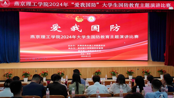 本网讯(学生处 姜嘉敏 刘颖)5月14日,燕京理工学院2024年“爱我国防”大学生国防教育主题演讲比赛决赛在报告厅举行。廊坊市委宣传部国防教育办公室负责人郑绚文,廊坊广播电视台电视节目五部主任王佳峰,燕京理工学院学生处处长宣银,学校办公室副主任、党委宣传部副部长李家曾,各学院党总支书记、学生会指导老师、征兵工作专员以及各学院学生代表齐聚一堂,赓续红色血脉,弘扬爱国情怀。