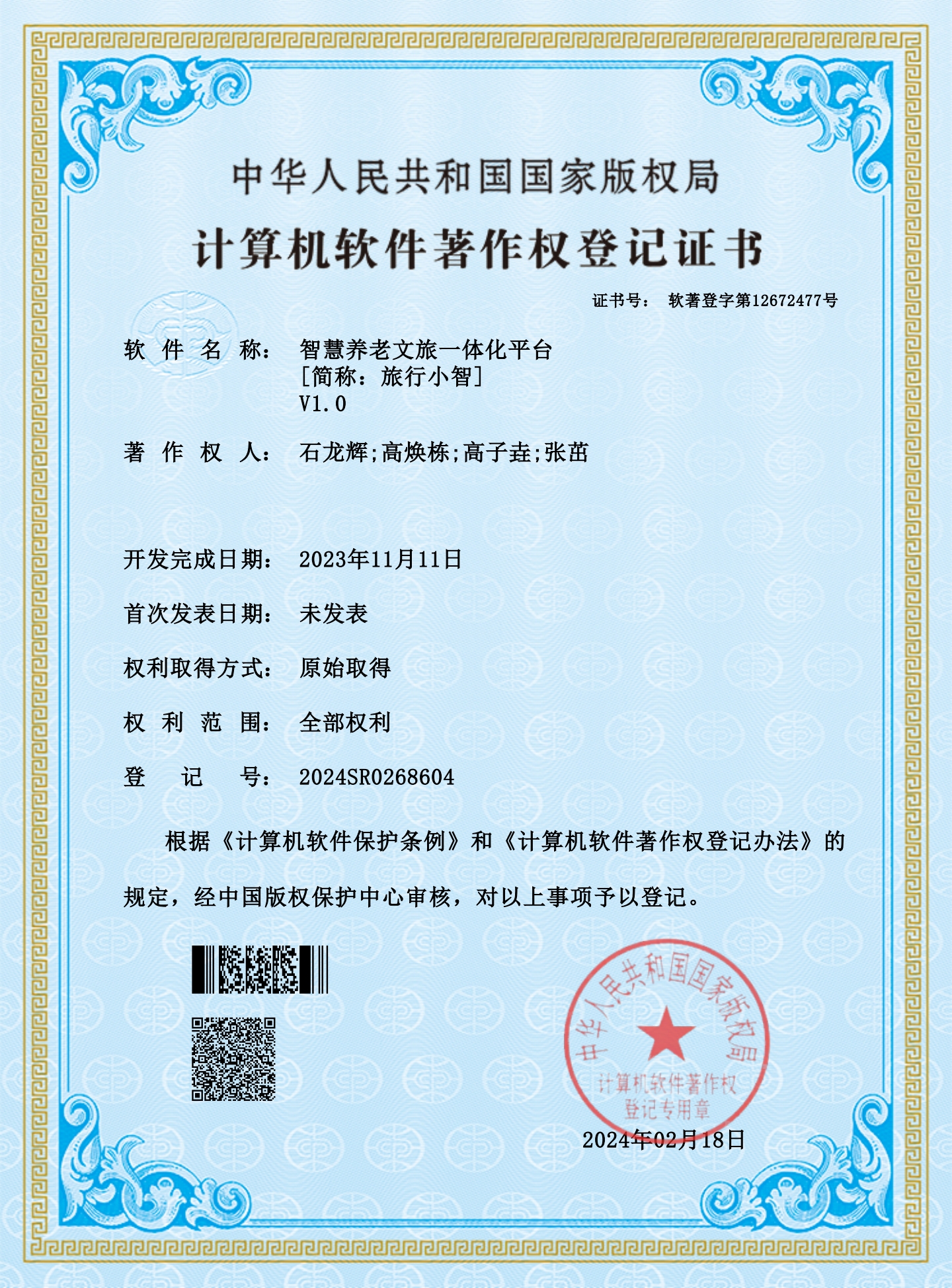 本网讯(信息科学与技术学院 胡紫含)在当今数字化、智能化的时代浪潮中,提升旅游服务质量、满足人们日益多样化的旅游需求成为重要课题。7月14日,信息科学与技术学院ACM协会“畅行随心”项目组的石龙辉、高焕栋、高子垚、张茁四位同学自主研发的“智慧文旅一体化平台”成功获批国家软件著作权,为文旅产业的智能化发展注入了新的活力。