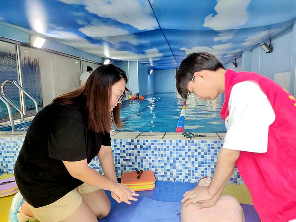 健康中国志愿服务队在游泳馆开展急救演示