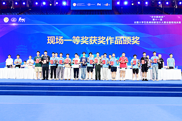 本网讯(智能工程学院 刘彬)7月17日,“华中数控杯”第十一届全国大学生机械创新设计大赛决赛在华中科技大学圆满落下帷幕,大赛设置“兴农机械”和“高性能仿生机械”两个赛项,经过层层选拔和激烈角逐,由智能工程学院卢飞、侍代军老师指导,郭明祥、连佳豪、赵嘉齐、张文卓、方文星同学组成的团队的参赛作品《娃哈哈》斩获“高性能仿生机械——仿生青蛙”赛项一等奖(最高奖)。