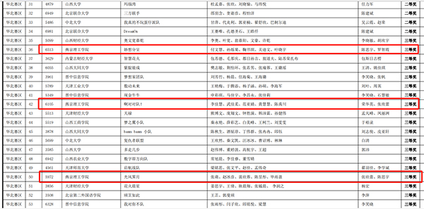 获奖队伍名单