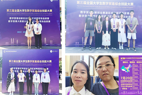 本网讯(国际商学院 荣华英 李佳慧)2024年7月,由全国大学生数字贸易综合技能大赛组织委员会承办的第三届全国大学生数字贸易综合技能大赛成功举办。本届大赛自2024年7月20日开始,分七大区域选拔,共有来自29个省、直辖市、自治区的527所高校20000余名师生参加。燕京理工学院共组织3支队伍由荣华英和黄玉蓓两位老师带队赴北京工业大学参加华北赛区现场选拔赛,8月14日,我校“数字贸易大数据分析赛道”的“啊对对队!”“妙想分呈”和 “光风霁月”,3支队伍均表现出色,首次参赛就荣获了华北赛区三等奖,获奖队伍指导老师有:荣华英、张欣蕾、罗智霞、陈思宇。