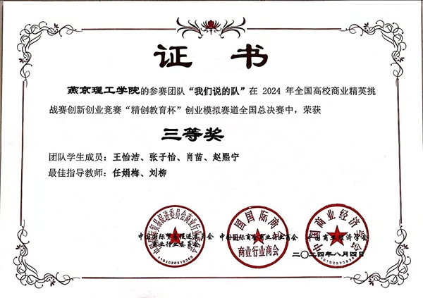 本网讯(国际商学院 刘柳)8月,2024年全国高校商业精英挑战赛创新创业竞赛——“精创教育杯”创业模拟赛道全国总决赛正式落幕。全国高校商业精英挑战赛(China University Business Elite Challenge,简称CUBEC)是由中国国际贸易促进委员会商业行业委员会牵头主办的国家级学科竞赛活动,旨在推动高校、企业以及创客等主体的协同合作,加快高校创新创业成果的转化。全国高校商业精英挑战赛创新创业竞赛“精创教育杯”创业模拟赛道已列入中国高等教育学会发布的《2023全国普通高校大学生竞赛分析报告》竞赛目录(赛项序号47)。