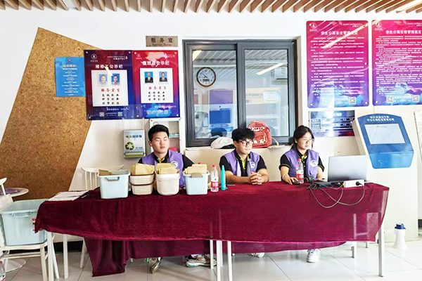 党员师生们在各个岗位为新生服务