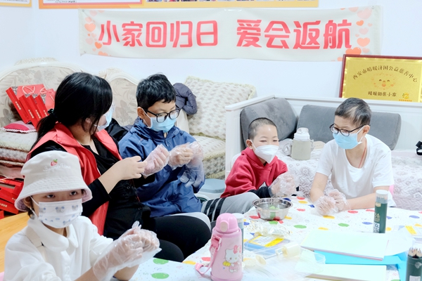 在晴暖爱心小家,志愿者们教孩子们跳手势舞、制作冰皮月饼、猜灯谜等,在互动中传递着快乐与温暖,同时也展示了中华文化的独特魅力。此外,志愿者们还带来了卡纸、彩铅、彩笔等物资,以实际行动表达了对孩子们的深切关怀与爱护。