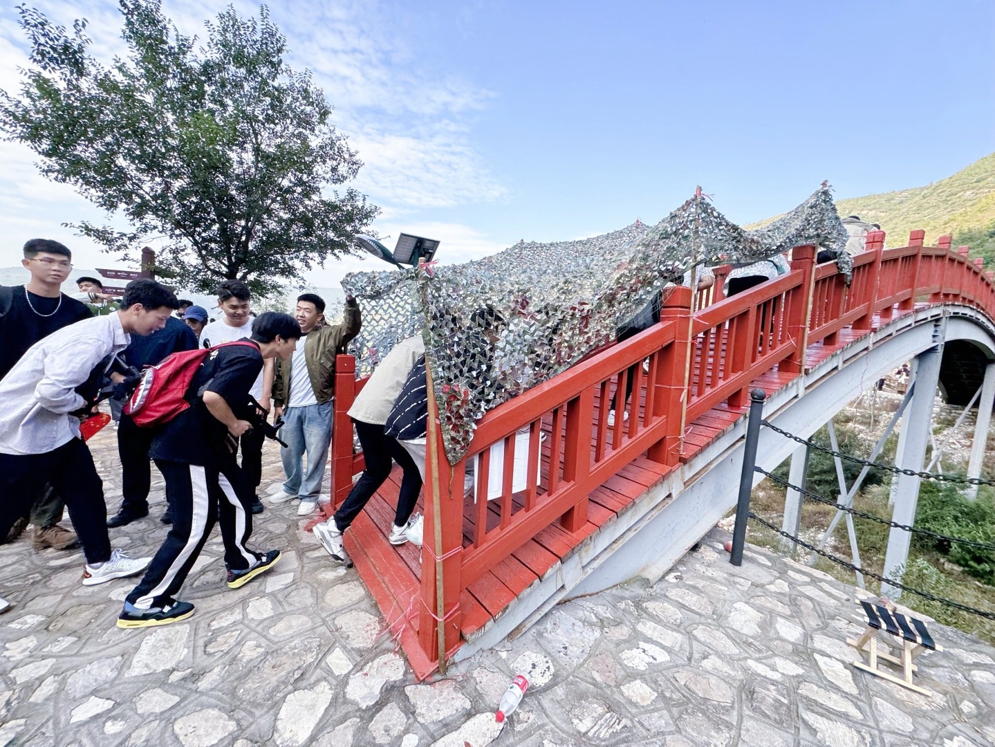 在国防后备营的引领下,同学们生动再现飞夺泸定桥的壮烈场景。面部涂上油彩,紧紧握住“枪支”,在“烟雾”之中勇敢 “飞跃” 模拟桥梁,穿过重重问题考验。感受红军战士在长征途中的英勇顽强与不怕牺牲精神。这一环节,既是对体能的挑战,更是对心灵的触动,勉励同学们珍惜如今的幸福生活,以革命先烈为榜样,勇敢无畏,挑战极限。