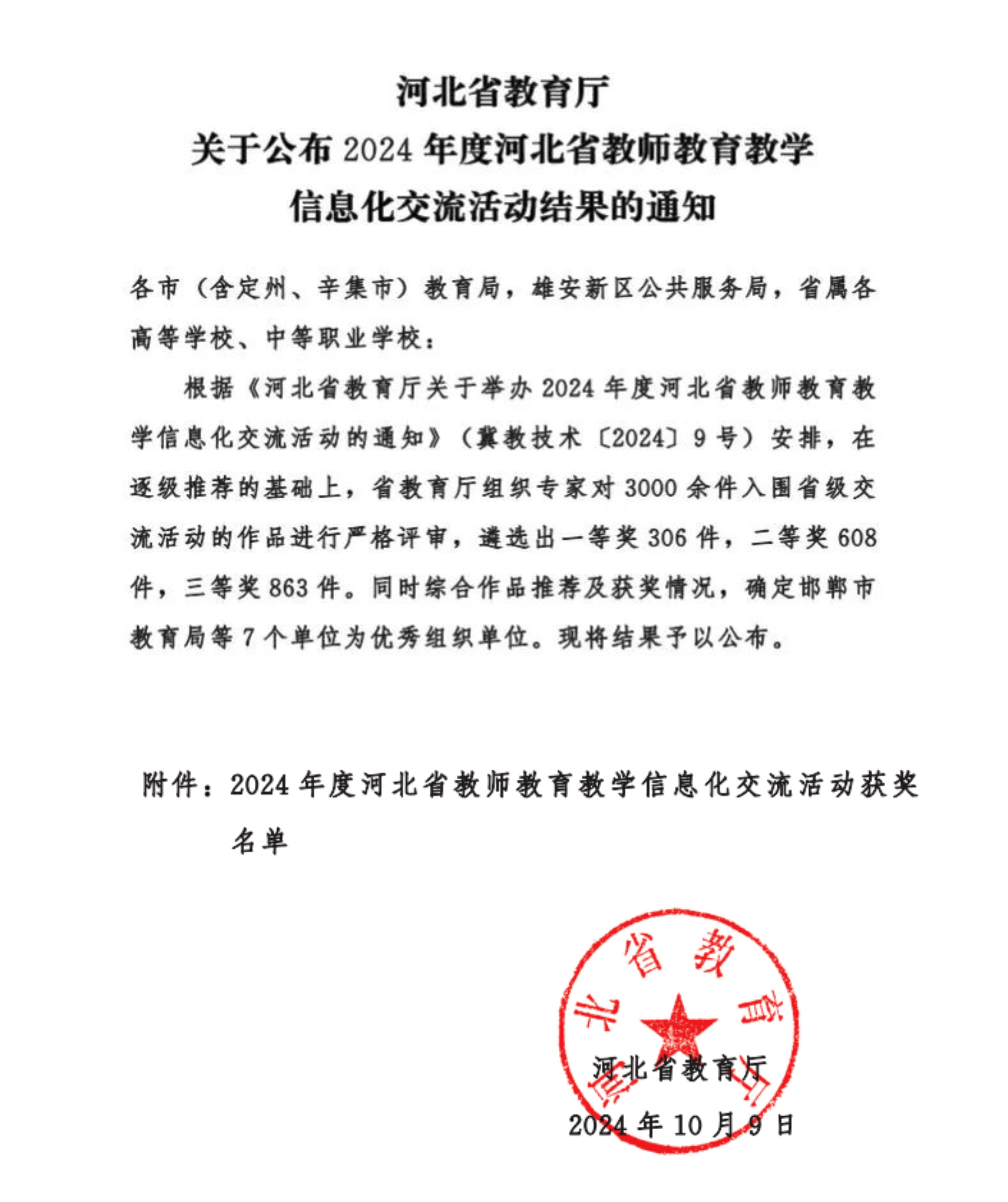 本网讯(艺术学院 李思颖)近日,河北省教育厅公布2024年度河北省教师教育教学信息化交流活动评选结,艺术学院周艺、严思寒、刘紫薇三位老师荣获得省级教师赛一等奖。