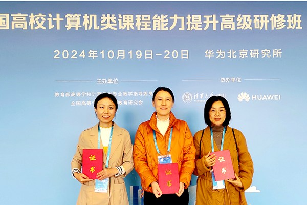本网讯(信息科学与技术学院 万露)10月19日至20日,由教育部高等学校计算机类专业教学指导委员会和全国高等学校计算机教育研究会主办、清华大学出版社与华为公司共同协办的全国高校计算机类课程能力提升高级研修班(2024年第七期)在华为北京研究所举行。信息科学与技术学院的孙丽云老师、王芳老师和王娇娇老师参与本次培训,并取得了相应证书。
