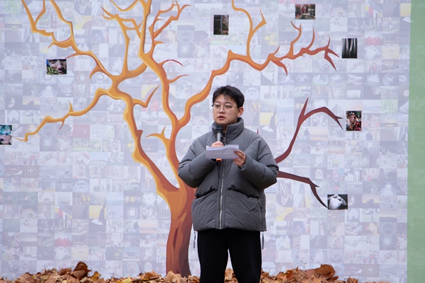 非洲鼓社团的精彩表演后,影展正式开始。本次活动的亮点环节是“落叶互动”,在场的嘉宾们将象征认可与鼓励的落叶粘贴在背景板对应的摄影作品上,随后,老师和同学们踊跃参与,也将自己的“叶子”投向心仪的作品。这一互动环节不仅增添了展览的趣味性,也促进了师生之间的交流互动,现场氛围热烈而温馨。本次影展作品涵盖了家庭生活、社会变迁及非物质文化遗产等多种主题,展示了学生们独特的视角和深刻的思考。作品形式多样,既有反映个人情感的纪实摄影,也有探讨社会现象的艺术表达,充分体现了摄影作为媒介在感知与表达方面的独特优势。通过这些作品,观众能够感受到创作者们对生活的细腻观察和对社会的深刻关怀。