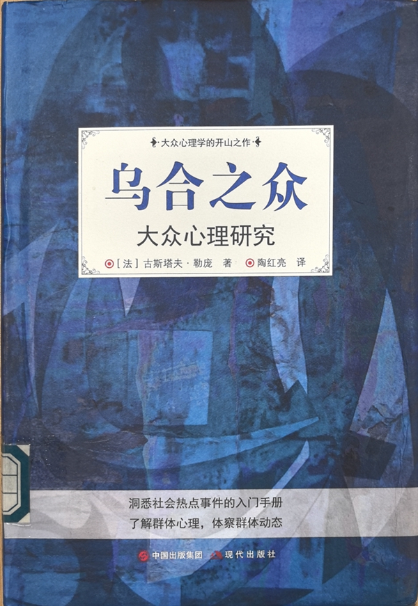 1.《乌合之众》作者:[法]古斯塔夫·勒庞 索书号:C912.64/L4400 馆藏地点:文科馆110阅览室10架5列5层