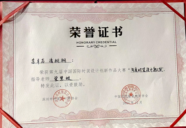 本网讯(艺术学院 王紫怡)近日,由深圳市时装设计师协会、中国纺织服装教育学会联合主办,法国泳装品牌俪丝娅RELLECIGA赞助的第九届中国大学生模特大赛落幕。在本次大赛中,艺术学院服装表演专业赵育浛同学荣获“二等奖”、宋家宝同学荣获“三等奖”,李卓芮、潘桐桐两位同学在第九届中国国际时装设计创新作品大赛中荣获“年度时装设计新人奖”,此次参赛选手是由服表专业教师魏鸿宇、梁慧姣共同指导。