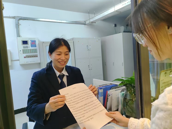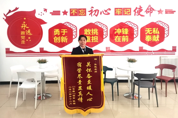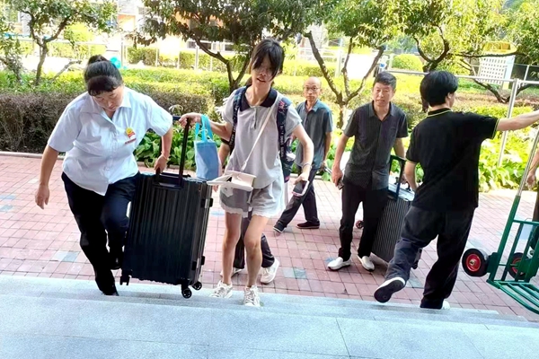 迎接2024级新生时,宿管阿姨李红霞说,她希望通过自己的最大努力让学生从“小家”到“大家”,承担起家长的角色,为学生的在校生活保驾护航。在近八年的宿管工作中,她接过无数个行李,成为无数名学生的“楼妈”,所有后勤保障人员尽职尽责的为学生搭建起温暖的“大家”。
