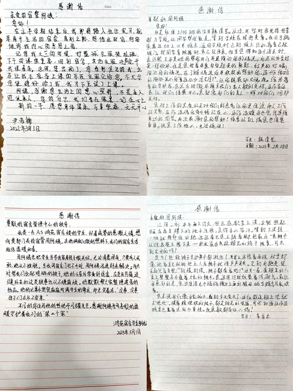 学生们送给宿管阿姨的感谢信