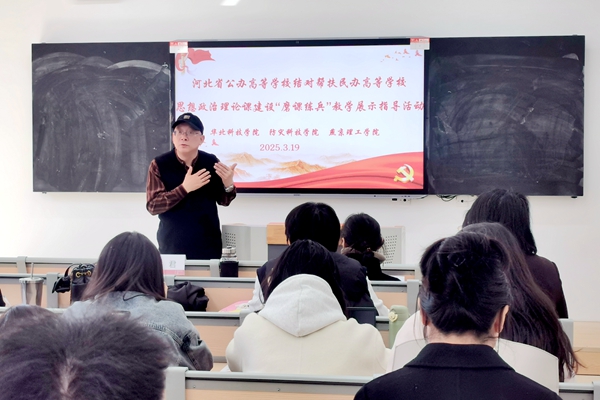 本网讯(马克思主义学院 李垠 丁娟 周月)3月19日,河北省公办高等学校结对帮扶民办高等学校思想政治理论课建设“磨课练兵”教学展示指导活动在燕京理工学院举行。活动由燕京理工学院主办,华北科技学院、防灾科技学院及燕京理工学院马克思主义学院联合承办,旨在通过跨校协作提升思政课教学质量,推动思政教育创新发展。三所高校马克思主义学院负责人及全体思政教师参与活动。